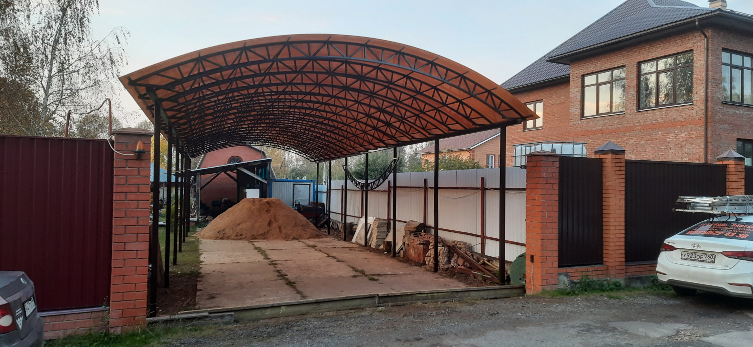 Навес для автомобиля- это лучшее укрытие для вашего транспортного средства. Большой выбор типа конструкции от простых дуг, до сложных геометрических форм. Максимально возможный индивидуальный подход к каждому клиенту. Большой опыт работы в данной сфере. Гарантируем безопасность и надежность конструкции. На Ваш выбор любой цвет самой металлоконструкции и поликарбоната. Полное оформление документов. Мы даем гарантию на свою продукцию. На металлоконструкции 1 год, на лако-красочные покрытия 2 года, на сотовый поликарбонат 10 лет. Вызов замерщика БЕСПЛАТНО.